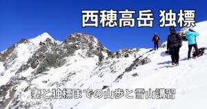 雪山では、ただ歩くだけでなく、装備の扱いや歩き方、ピッケルの使い方などを一つずつ身につけていくことが大切です。以前に西穂高岳・独標手前まで歩いた雪山登山講習の様子については、こちらの記事にもまとめています。